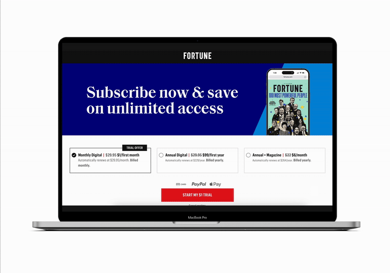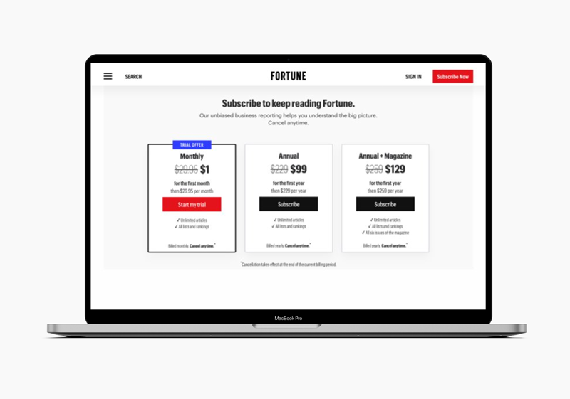 Fortune.com Subscribe Page Redesign
